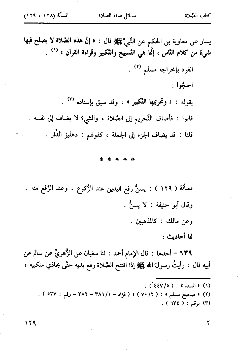 مسألة (129): يسنُّ رفع اليدين عند الرُّكوع، وعند الرَّفع منه.