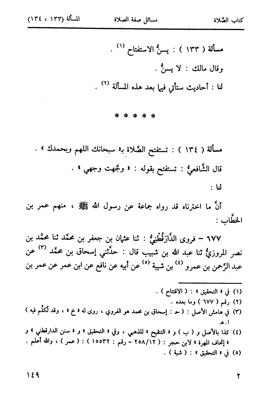 مسألة (134): تستفتح الصَّلاة بـ "سبحانك اللهم وبحمدك".