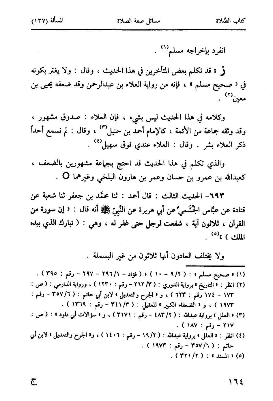ز: قد تكلم بعض المتأخرين في هذا الحديث، وقال: ولا يغتر بكونه في "صحيح مسلم"، فإنه من رواية العلاء بن عبد الرَّحمن وقد ضعفه يحيى بن معين (2).
