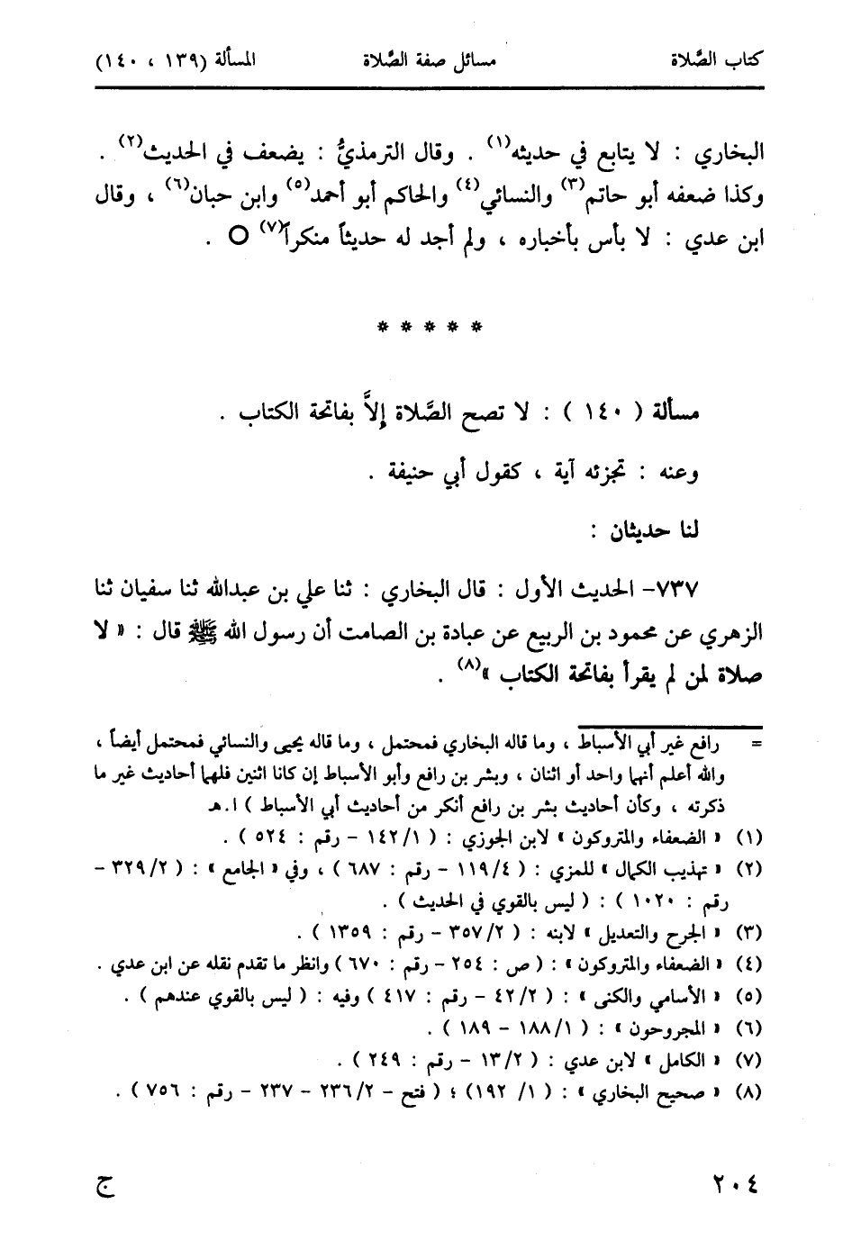 737 - الحديث الأوَّل: قال البخاريُّ: ثنا علي بن عبد الله ثنا سفيان ثنا الزُّهريُّ عن محمود بن الربيع عن عبادة بن الصامت أن رسول الله صَلَّى اللَّهُ عَلَيْهِ وَسَلَّمَ قال: "لا صلاة لمن لم يقرأ بفاتحة الكتاب" (8).