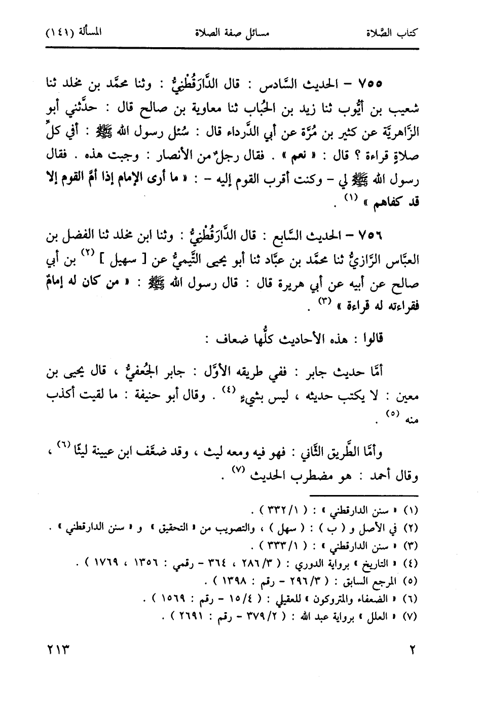 756 - الحديث السَّابع: قال الدَّارَقُطْنِيُّ: وثنا ابن مخلد ثنا الفضل بن العباس الرَّازيُّ ثنا محمد بن عبَّاد ثنا أبو يحيى التَّيميُّ عن [سهيل] (2) بن أبي صالح عن أبيه عن أبي هريرة قال: قال رسول الله صَلَّى اللَّهُ عَلَيْهِ وَسَلَّمَ: " من كان له إمام فقراءته له قراءة " (3).