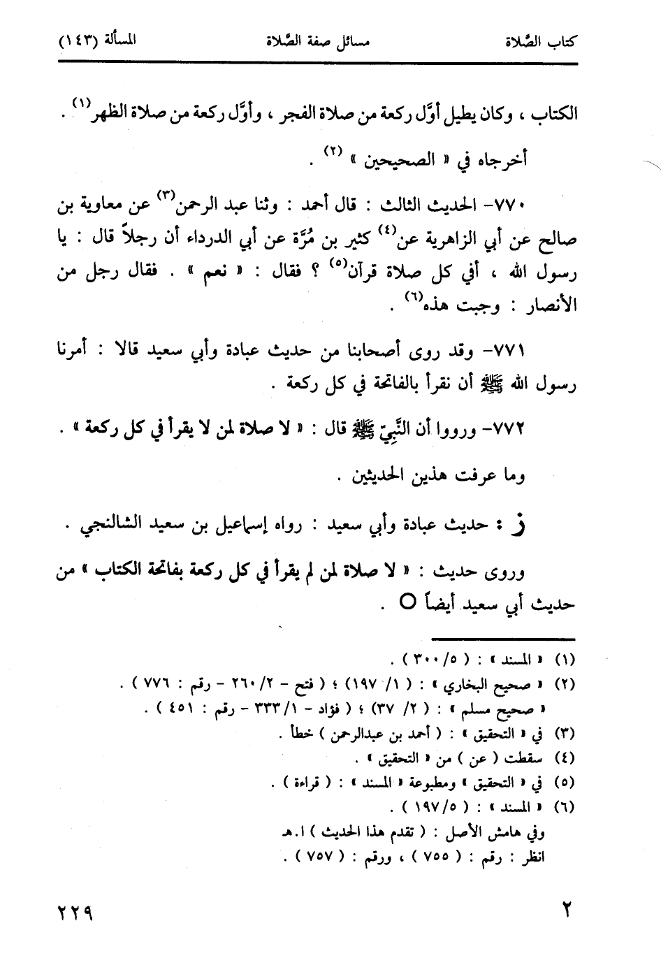 771 - وقد روى أصحابنا من حديث عبادة وأبي سعيد قالا: أمرنا رسول الله صَلَّى اللَّهُ عَلَيْهِ وَسَلَّمَ أن نقرأ بالفاتحة في كل ركعة.