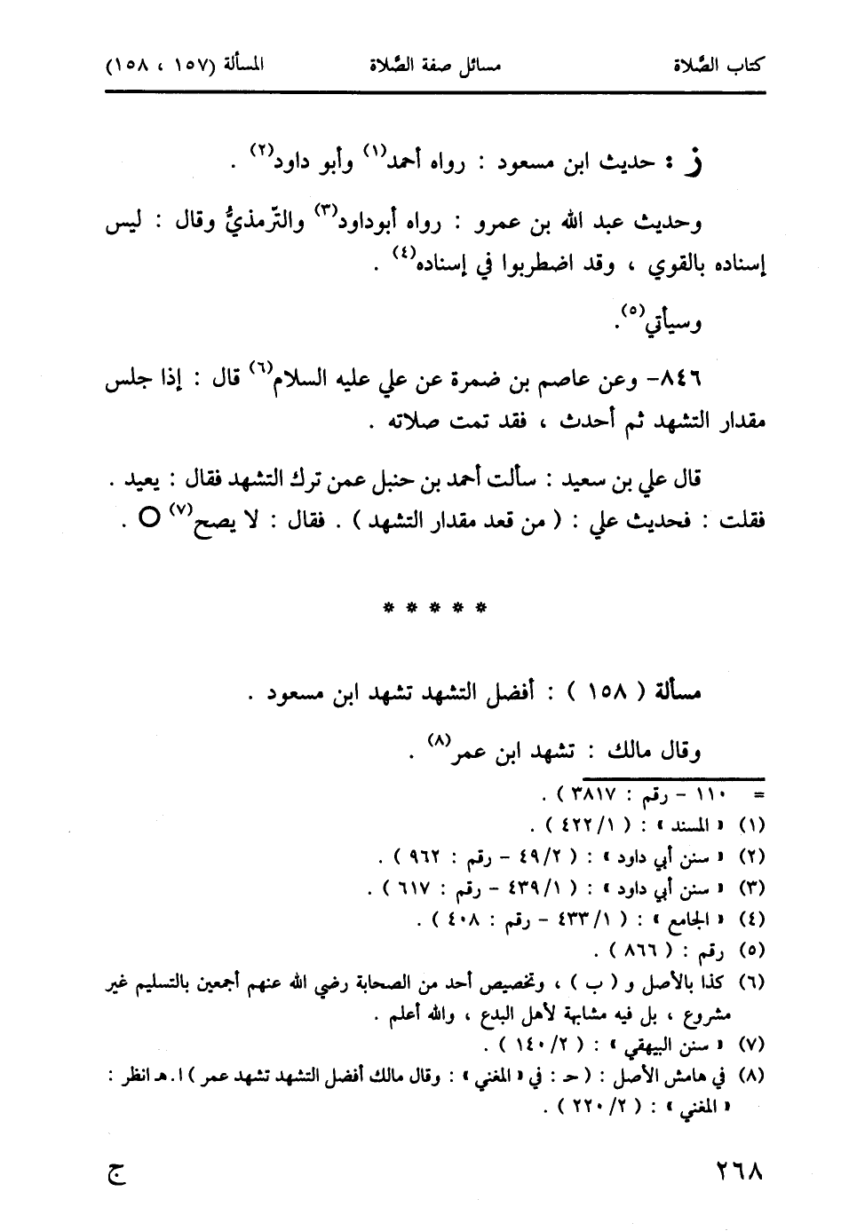 مسألة (158): أفضل التشهد تشهد ابن مسعود.