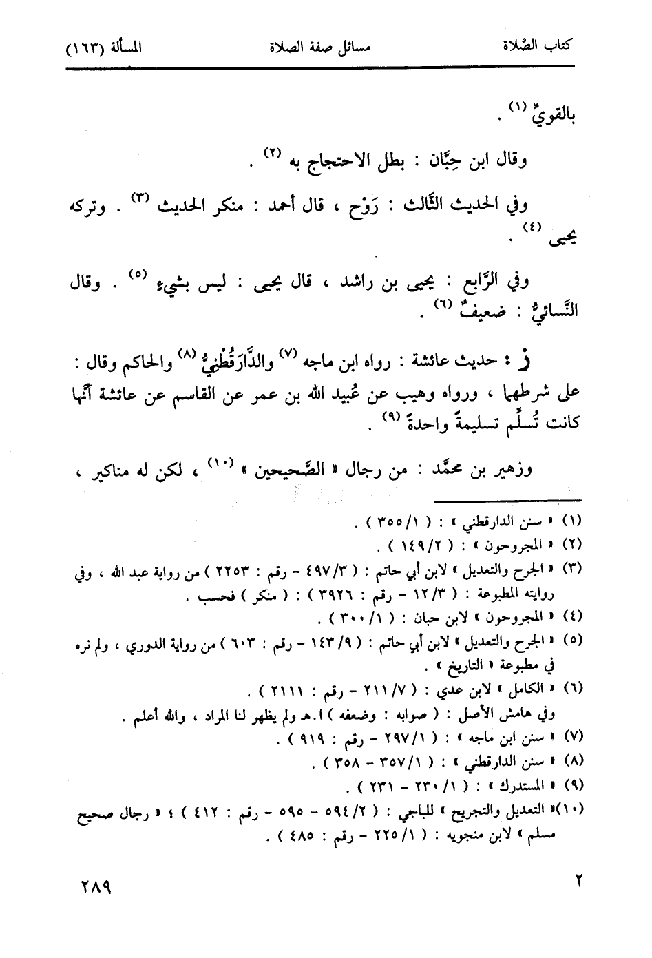 ز: حديث عائشة: رواه ابن ماجه (7) والدَّارَقُطْنِيُّ (8) والحاكم وقال: على شرطهما، ورواه وهيب عن عُبيد الله بن عمر عن القاسم عن عائشة أنَّها كانت تُسلِّم تسليمةً واحدةً (9).