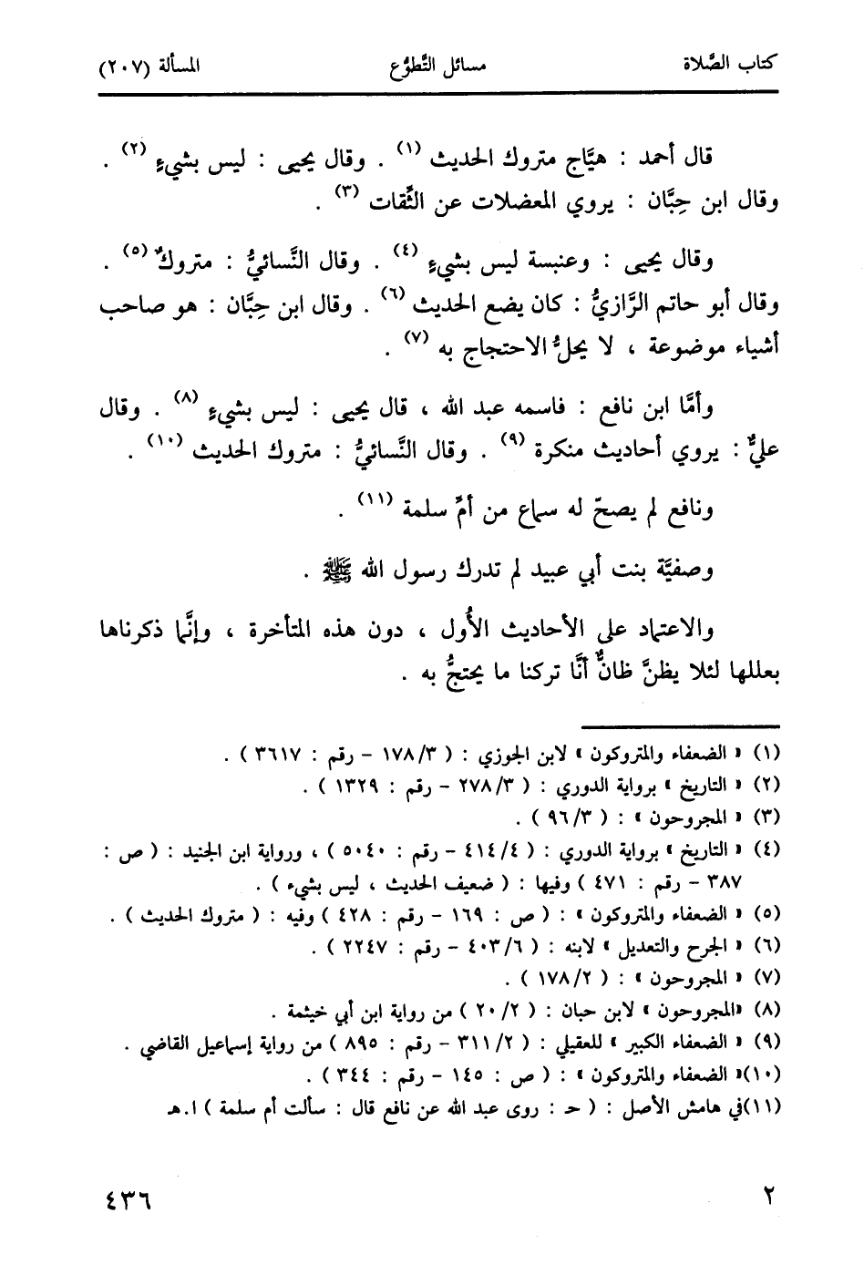 (11) في هامش الأصل: (حـ: روى عبد الله عن نافع قال: سألت أم سلمة) ا. هـ