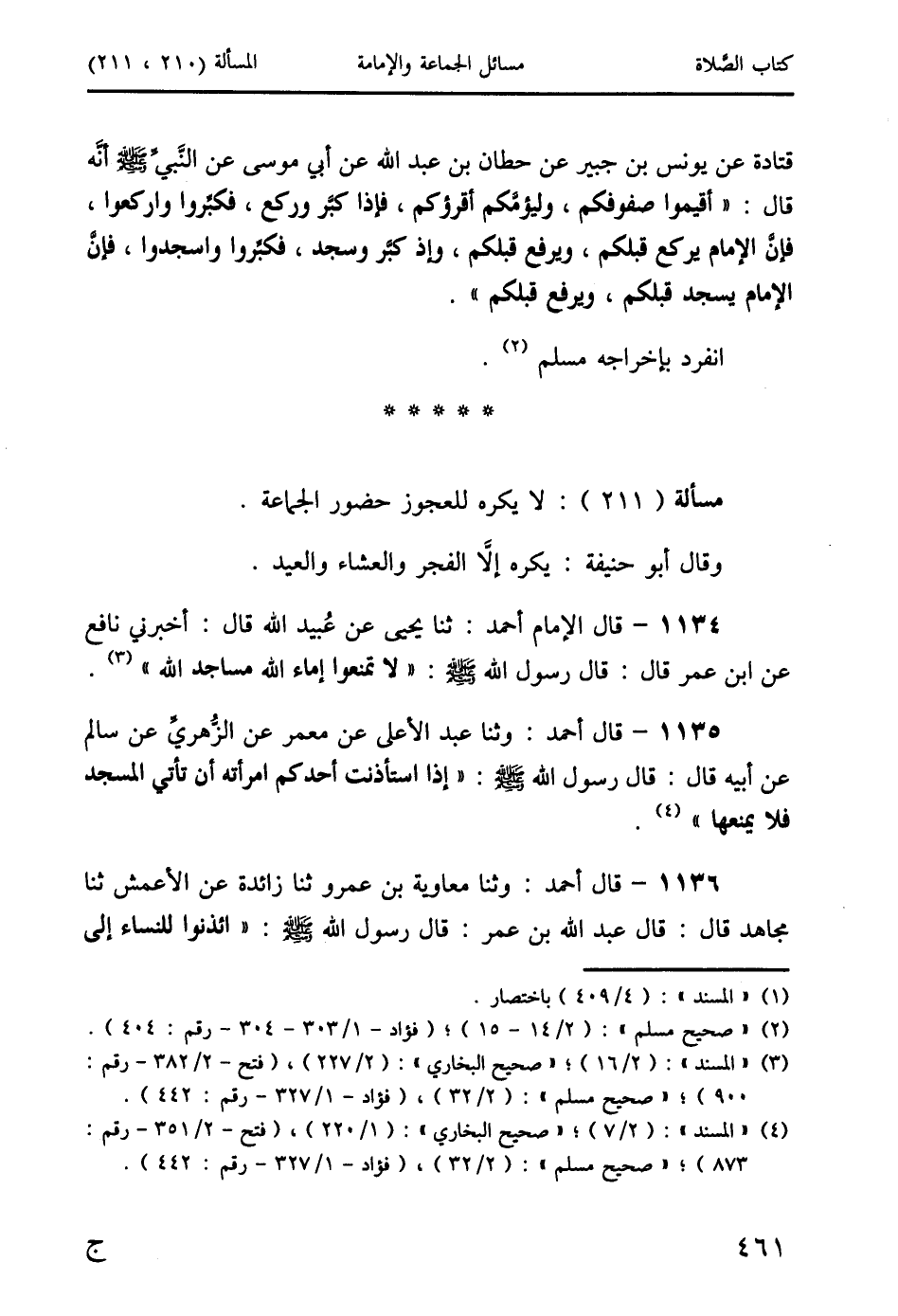(4) "المسند": (2/ 7)؛ "صحيح البخاري": (1/ 220)، (فتح - 2/ 351 - رقم: 873)؛ "صحيح مسلم": (2/ 32)، (فؤاد - 1/ 327 - رقم: 442).