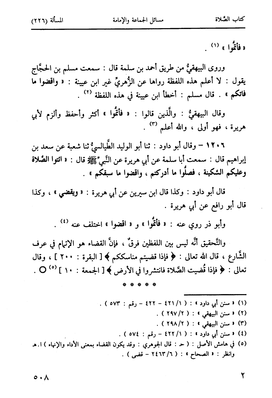 وروى البيهقيُّ من طريق أحمد بن سلمة قال: سمعت مسلم بن الحجَّاج يقول: لا أعلم هذه اللفظة رواها عن الزُّهريِّ غير ابن عيينة: " واقضوا ما فاتكم ". قال مسلم: أخطأ ابن عيينة في هذه اللفظة (2).