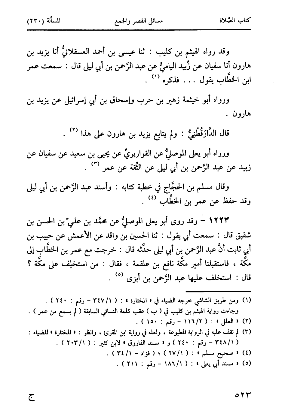 1223 - وقد روى أبو يعلى الموصليُّ عن محمد بن عليِّ بن الحسن بن شقيق قال: سمعت أبي يقول: ثنا الحسين بن واقد عن الأعمش عن حبيب بن أبي ثابت أنَّ عبد الرَّحمن بن أبي ليلى حدَّثه قال: خرجت مع عمر بن الخطَّاب إلى مكَّة، فاستقبلنا أمير مكَّة نافع بن علقمة، فقال: من استخلِف على مكَّة؟
