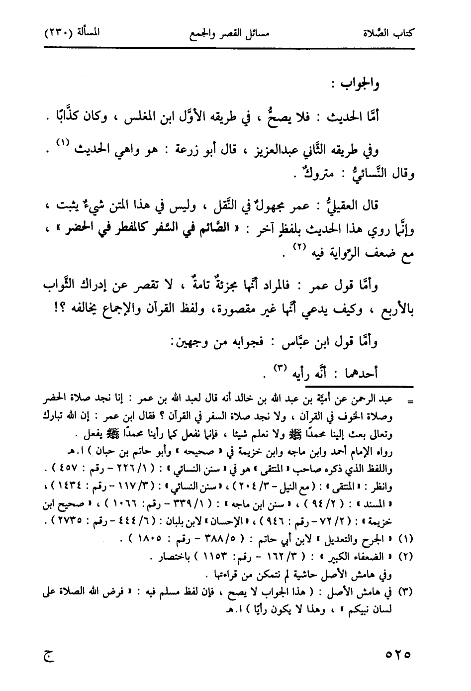 (3) في هامش الأصل: (هذا الجواب لا يصح، فإن لفظ مسلم فيه: " فرض الله الصلاة على لسان نبيكم "، وهذا لا يكون رأيًا) ا. هـ