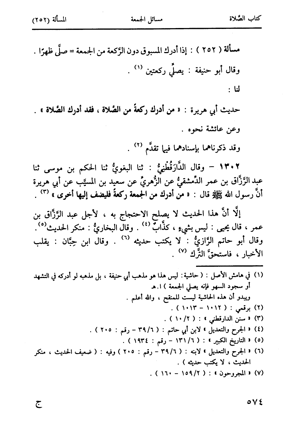 1302 - وقال الدَّارَقُطْنِيُّ: ثنا البغويُّ ثنا الحكم بن موسى ثنا عبد الرَّزَّاق بن عمر الدِّمشقيُّ عن الزُّهريِّ عن سعيد بن المسيّب عن أبي هريرة أنَّ رسول الله صَلَّى اللَّهُ عَلَيْهِ وَسَلَّمَ قال: " من أدرك من الجمعة ركعةً فليضف إليها أخرى " (3).