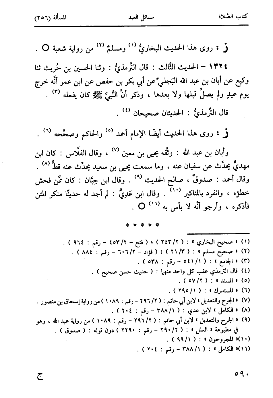 1324 - الحديث الثَّالث: قال التِّرمذيُّ: وثنا الحسين بن حُريث ثنا وكيع عن أبان بن عبد الله البَجليِّ عن أبي بكر بن حفص عن ابن عمر أنَّه خرج يوم عيدٍ ولم يصلِّ قبلها ولا بعدها، وذكر أنَّ النَّبيَّ صَلَّى اللَّهُ عَلَيْهِ وَسَلَّمَ كان يفعله (3).
