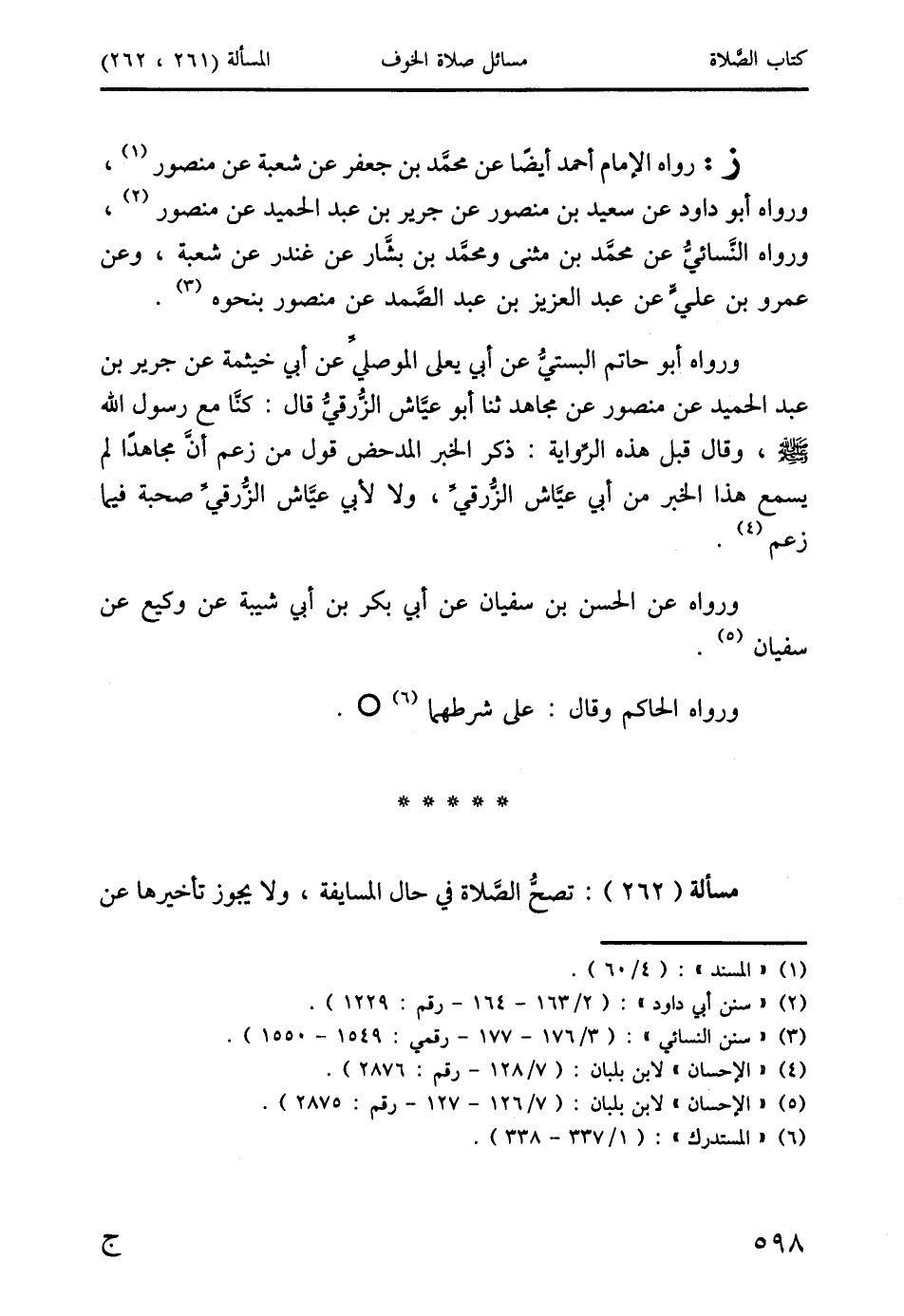ورواه أبو حاتم البستيُّ عن أبي يعلى الموصليِّ عن أبي خيثمة عن جرير بن عبد الحميد عن منصور عن مجاهد ثنا أبو عيَّاش الزُّرقيُّ قال: كنَّا مع رسول الله صَلَّى اللَّهُ عَلَيْهِ وَسَلَّمَ، وقال قبل هذه الرِّواية: ذكر الخبر المدحض قول من زعم أنَّ مجاهدًا لم يسمع هذا الخبر من أبي عيَّاش الزُّرقيِّ، ولا لأبي عيَّاش الزُّرقيِّ صحبة فيما زعم (4).