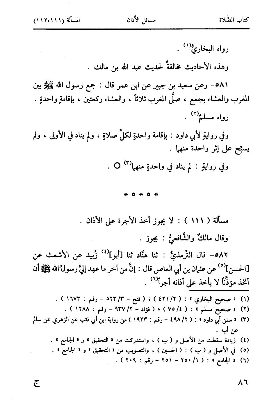 مسألة (111): لا يجوز أخذ الأجرة على الأذان.