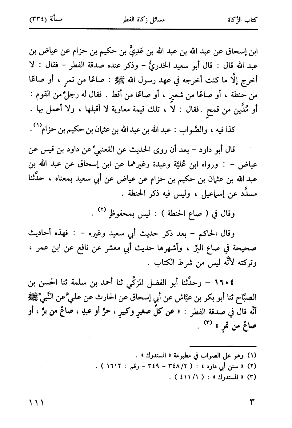 1604 - وحدَّثنا أبو الفضل المزكِّي ثنا أحمد بن سلمة ثنا الحسن بن الصبَّاح ثنا أبو بكر بن عيَّاش عن أبي إسحاق عن الحارث عن عليٍّ عن النَّبيِّ صَلَّى اللَّهُ عَلَيْهِ وَسَلَّمَ أَنَّه قال في صدقة الفطر: " عن كلِّ صغيرٍ وكبيرٍ، حرٍّ أو عبدٍ، صاعٌ من برٍّ، أو صاعٌ من تمرٍ" (3).
