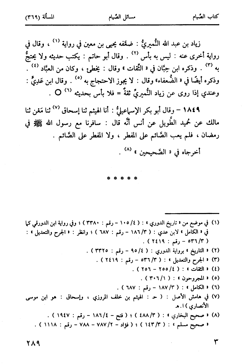 وذكره أيضًا في " الضُّعفاء" وقال: لا يجوز الاحتجاج به (5). وقال ابن عَدِيٍّ: وعندي إذا روى عن زياد النُّميريِّ ثقةٌ= فلا بأس بحديثه (6) O.