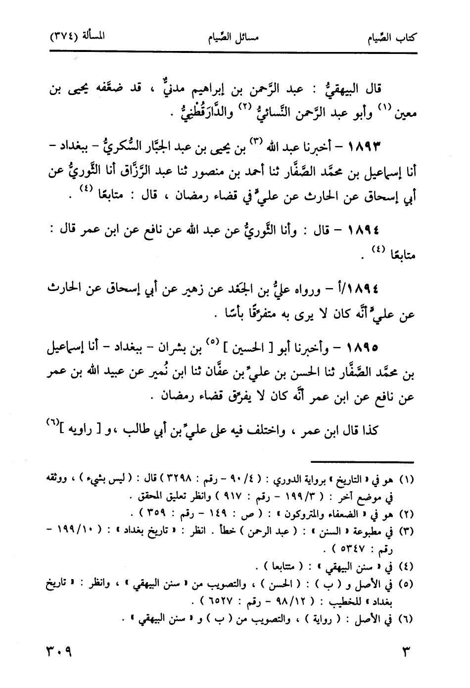 1893 - أخبرنا عبد الله (3) بن يحيى بن عبد الجبَّار السُّكريُّ- ببغداد- أنا إسماعيل بن محمَّد الصَّفَّار ثنا أحمد بن منصور ثنا عبد الرَّزَّاق أنا الثَّوريُّ عن أبي إسحاق عن الحارث عن عليٍّ في قضاء رمضان، قال: متابعًا (4).
