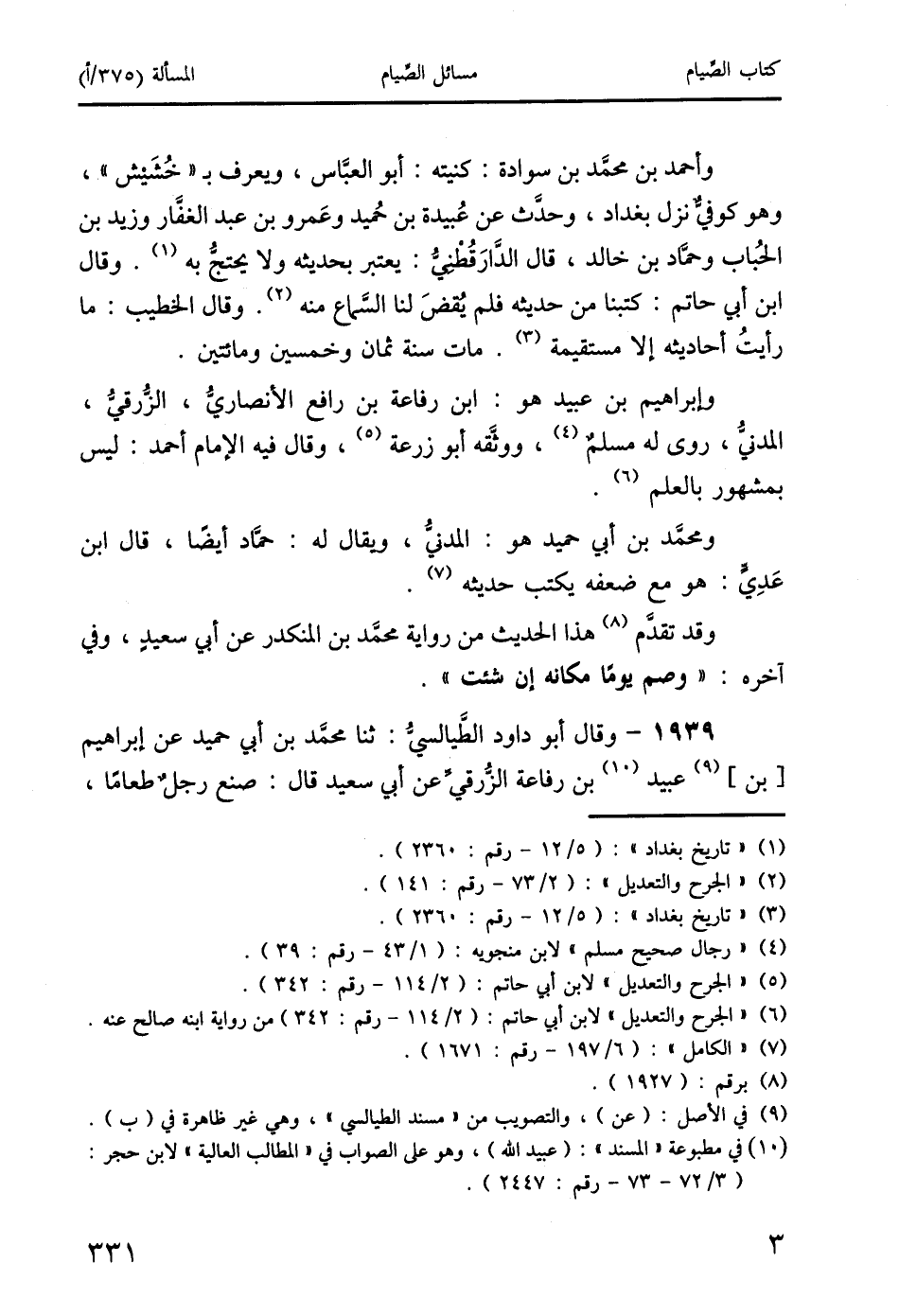 1939 - وقال أبو داود الطَّيالسيُّ: ثنا محمَّد بن أبي حميد عن إبراهيم [بن] (9) عبيد (10) بن رفاعة الزُّرقيِّ عن أبي سعيد قال: صنع رجلٌ طعامًا،