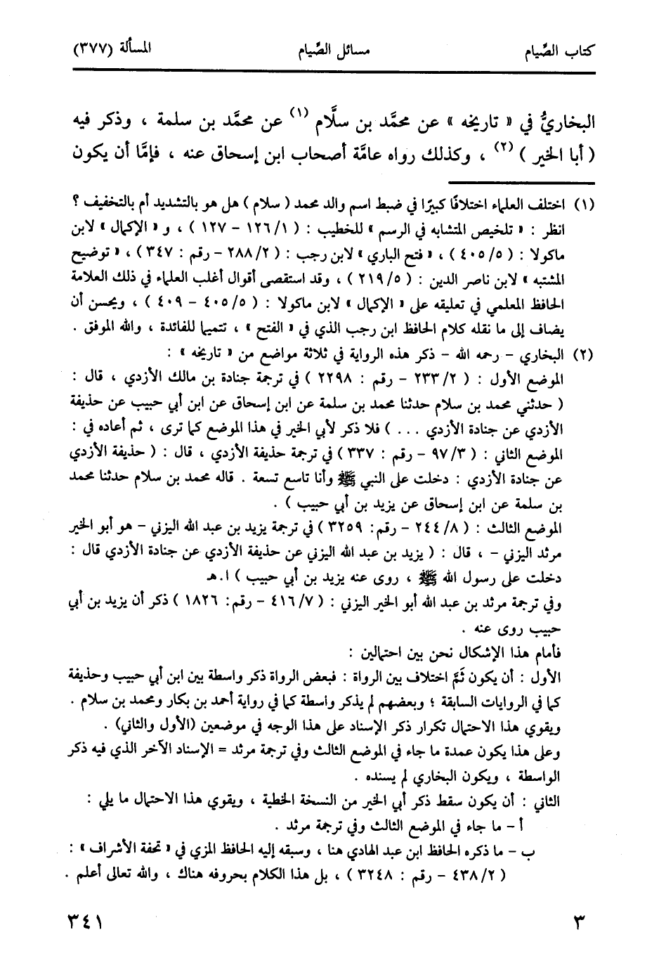(1) اختلف العلماء اختلافًا كبيرًا في ضبط اسم والد محمَّد (سلام) هل هو بالتشديد أم بالتخفيف؟