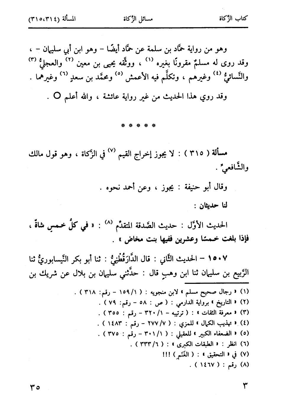 مسألة (315): لا يجوز إخراج القيم (7) في الزَّكاة، وهو قول مالك والشَّافعيِّ.