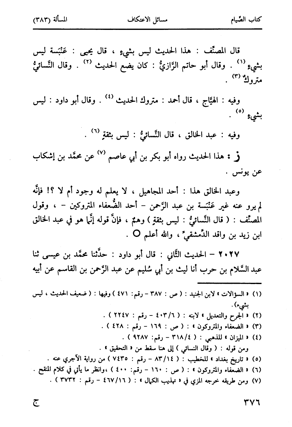 (6) "الضعفاء والمتروكون": (ص: 160 - رقم: 400)، وانظر ما يأتي في كلام المنقح.