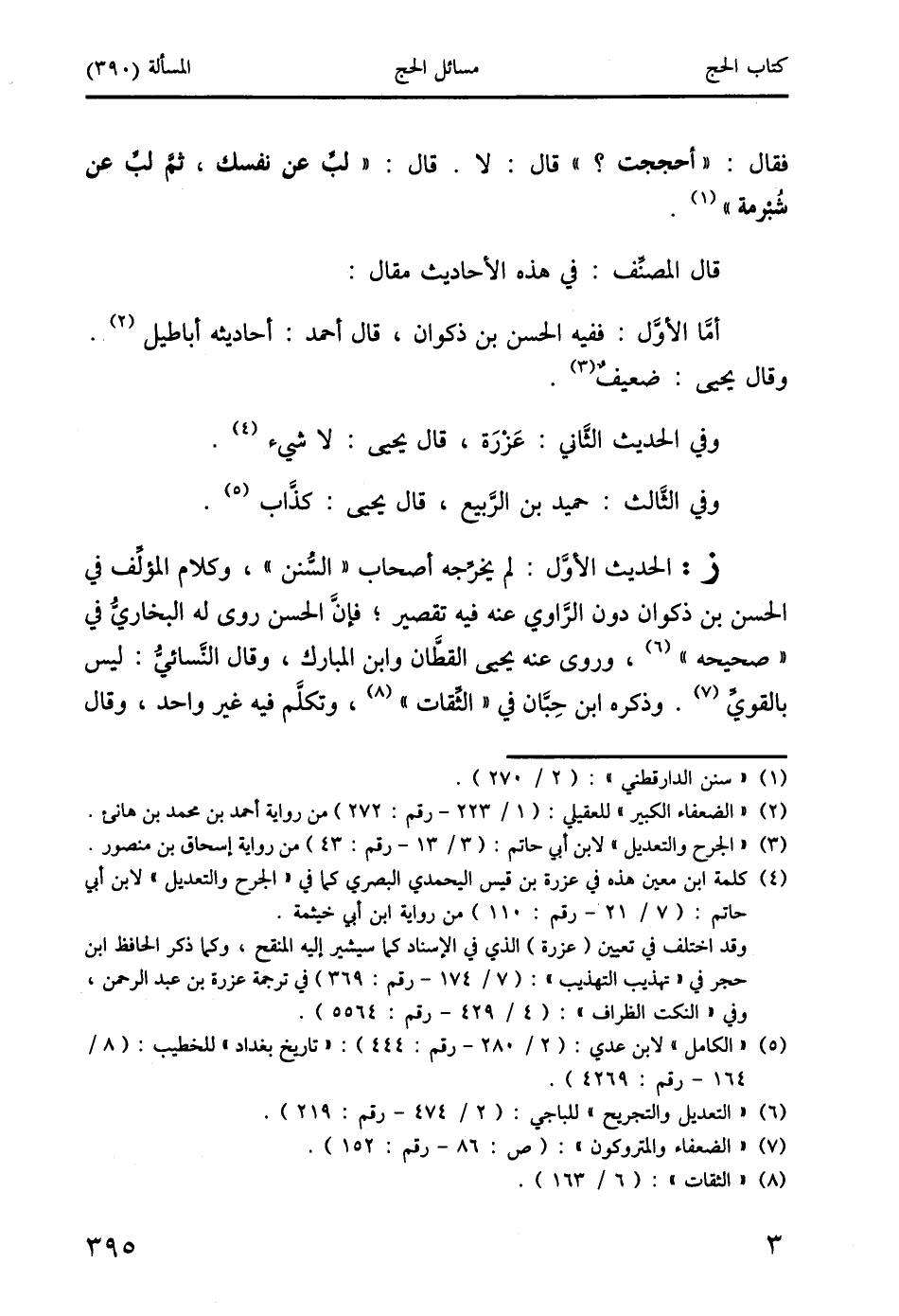 (6) " النعديل والتجريح " للباجي: (2/ 474 - رقم: 219). (7) "الضعفاء والمتروكون": (ص: 86 - رقم: 152).