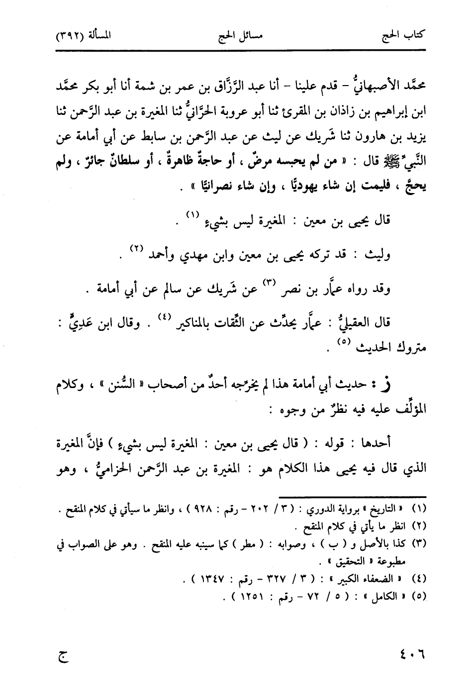 محمَّد الأصبهانيُّ- قدم علينا- أنا عبد الرَّزَّاق بن عمر بن شمة أنا أبو بكر محمَّد ابن إبراهيم بن زاذان بن المقرئ ثنا أبو عروبة الحرَّانيُّ ثنا المغيرة بن عبد الرَّحمن ثنا يزيد بن هارون ثنا شَريك عن ليث عن عبد الرَّحمن بن سابط عن أبي أمامة عن النَّبيِّ صَلَّى اللَّهُ عَلَيْهِ وَسَلَّمَ قال: " من لم يحبسه مرضٌ، أو حاجةٌ ظاهرةٌ، أو سلطانٌ جائرٌ، ولم