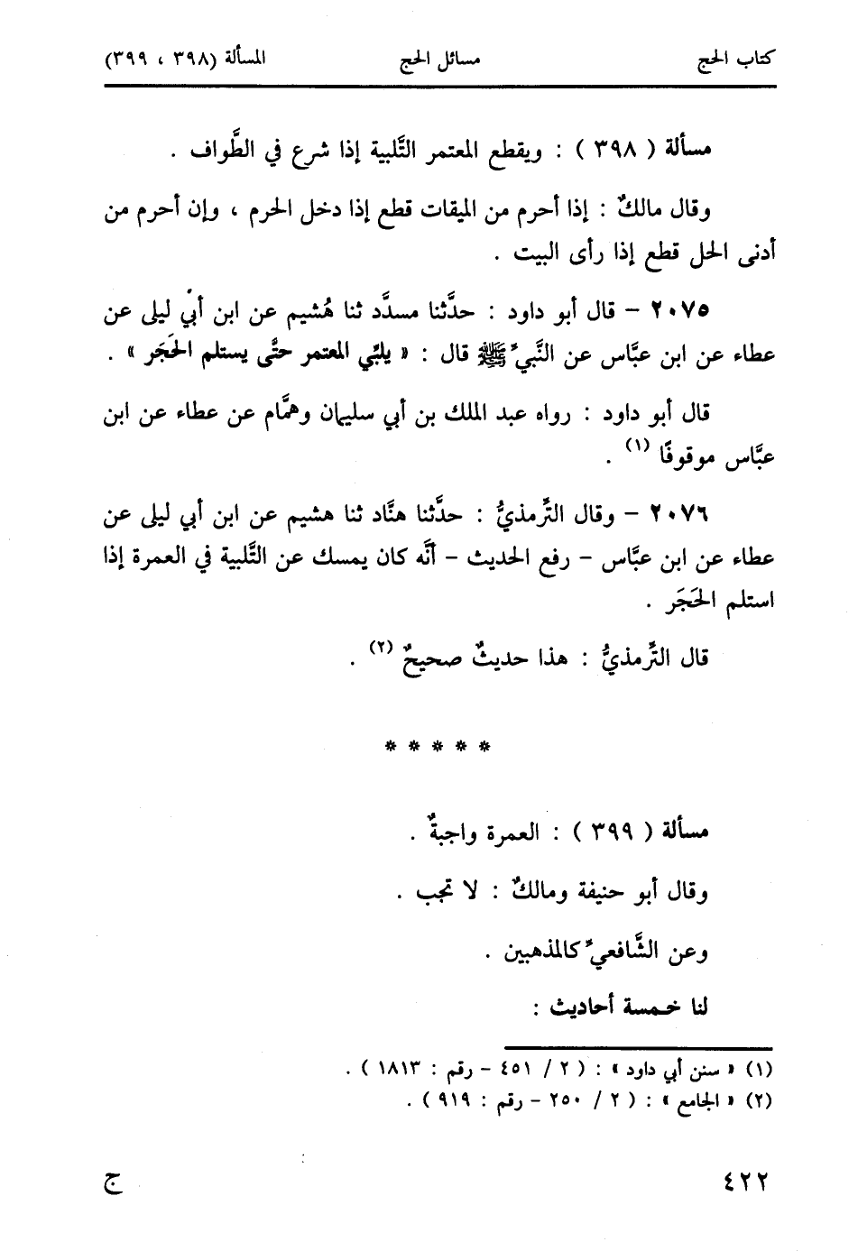 مسألة (399): العمرة واجبةٌ.