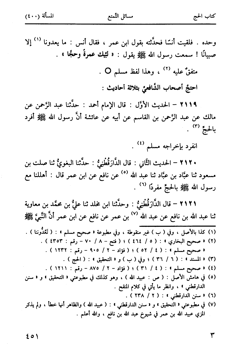 2120 - الحديث الثَّاني: قال الدَّارَقُطْنِيُّ: حدَّثنا البغويُّ ثنا صلت بن مسعود ثنا عبَّاد بن عبَّاد ثنا عبد الله (5) عن نافع عن ابن عمر قال: أهللنا مع رسول الله صَلَّى اللَّهُ عَلَيْهِ وَسَلَّمَ بالحجِّ مفردًا (6).