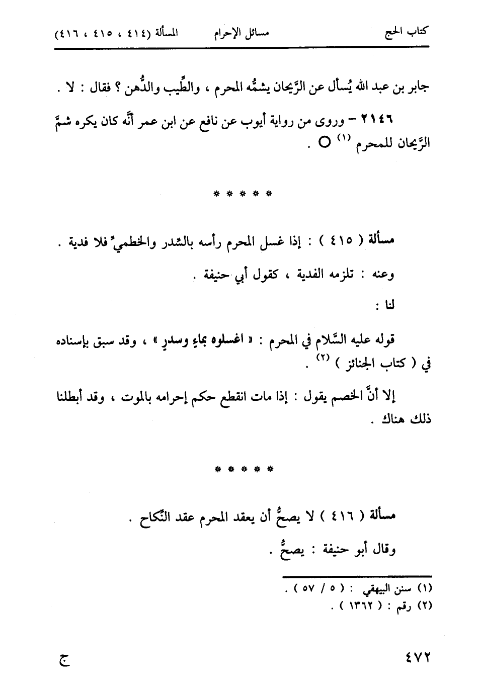 2146 - وروى من رواية أيوب عن نافع عن ابن عمر أنَّه كان يكره شمَّ الرَّيحان للمحرم (1) O.