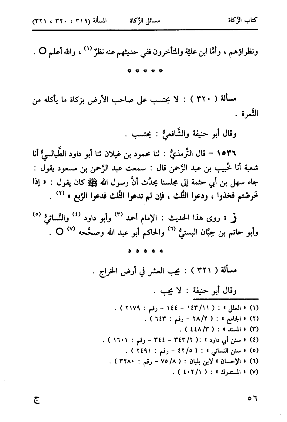 ز: روى هذا الحديث: الإمام أحمد (3) وأبو داود (4) والنَّسائيُّ (5) وأبو حاتم بن حِبَّان البستيُّ (6) والحاكم أبو عبد الله وصحَّحه (7) O.