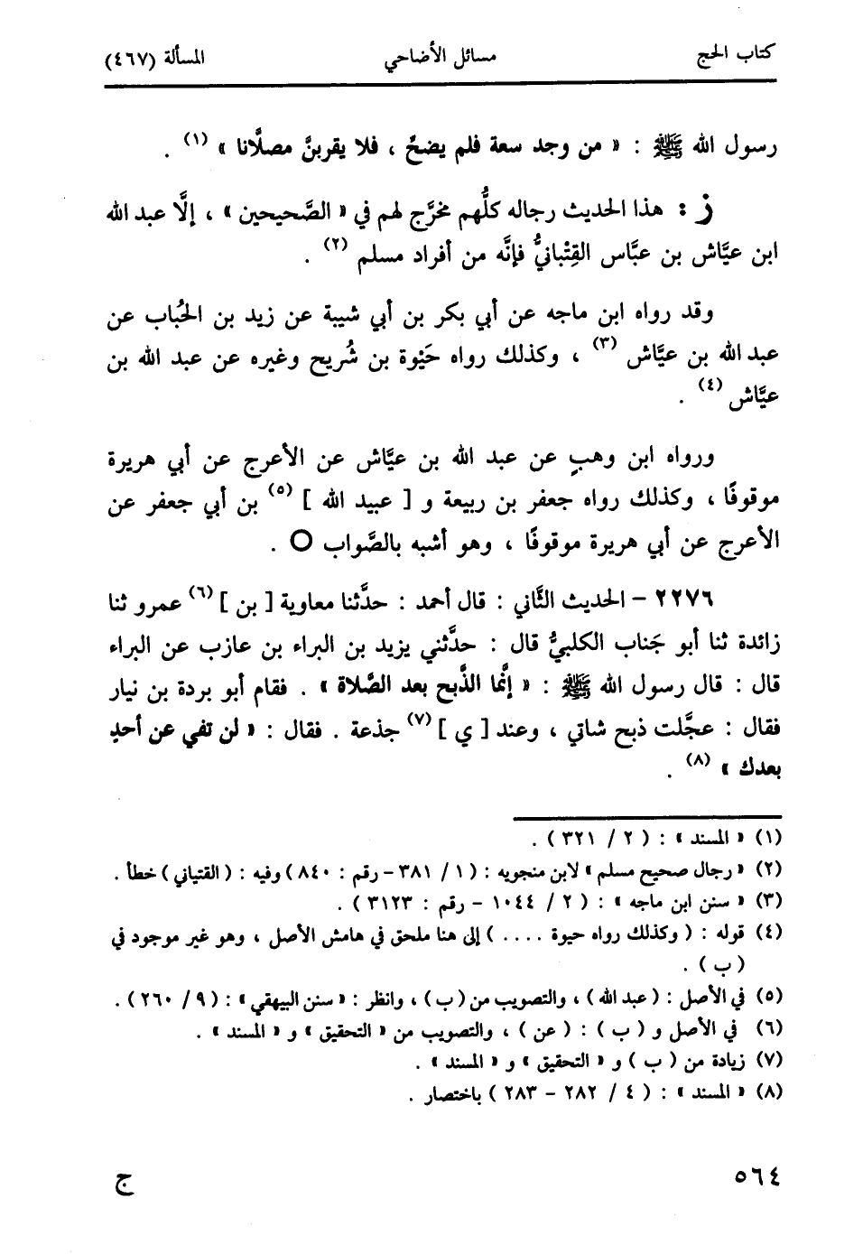 رسول الله صَلَّى اللَّهُ عَلَيْهِ وَسَلَّمَ: " من وجد سعة فلم يضحِّ، فلا يقربنَّ مصلانا " (1).