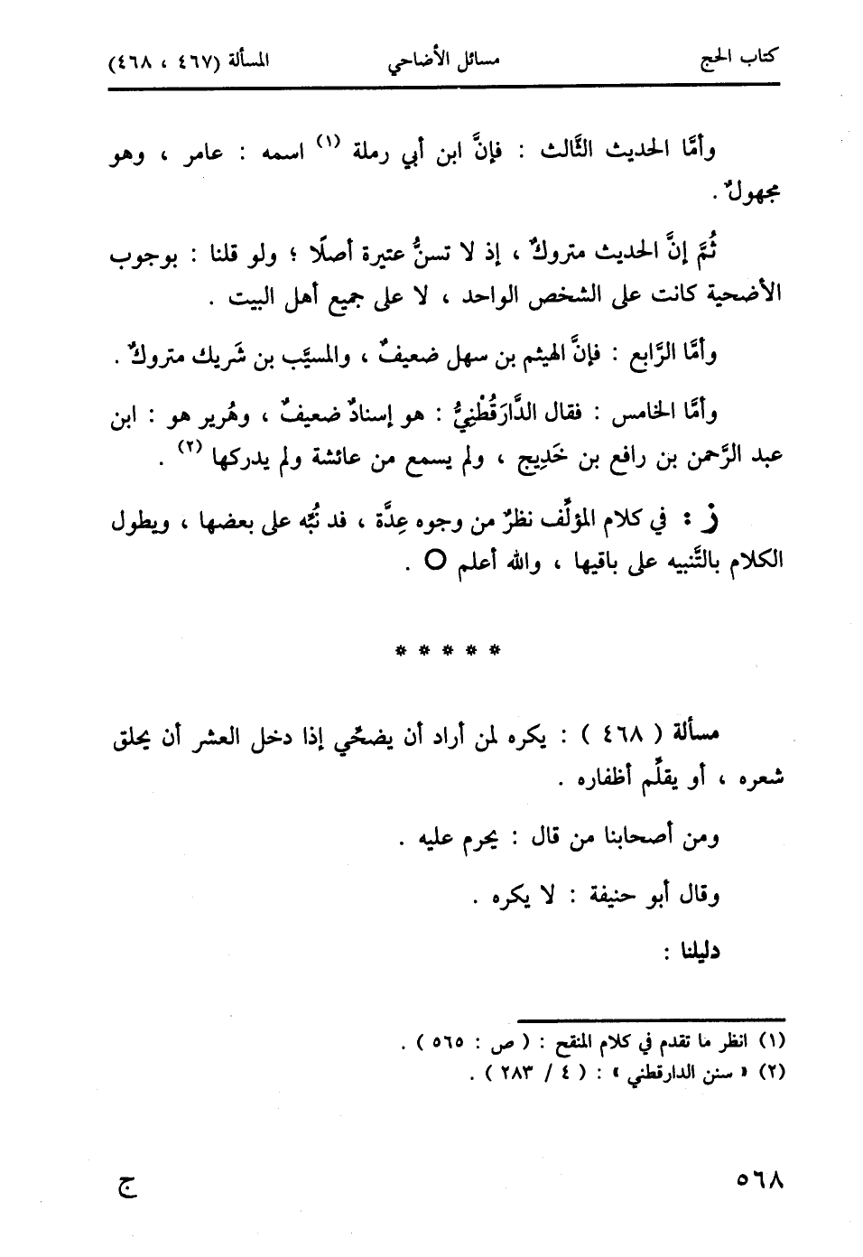 مسألة (468): يكره لمن أراد أن يضحِّي إذا دخل العشر أن يحلق شعره، أو يقلِّم أظفاره.