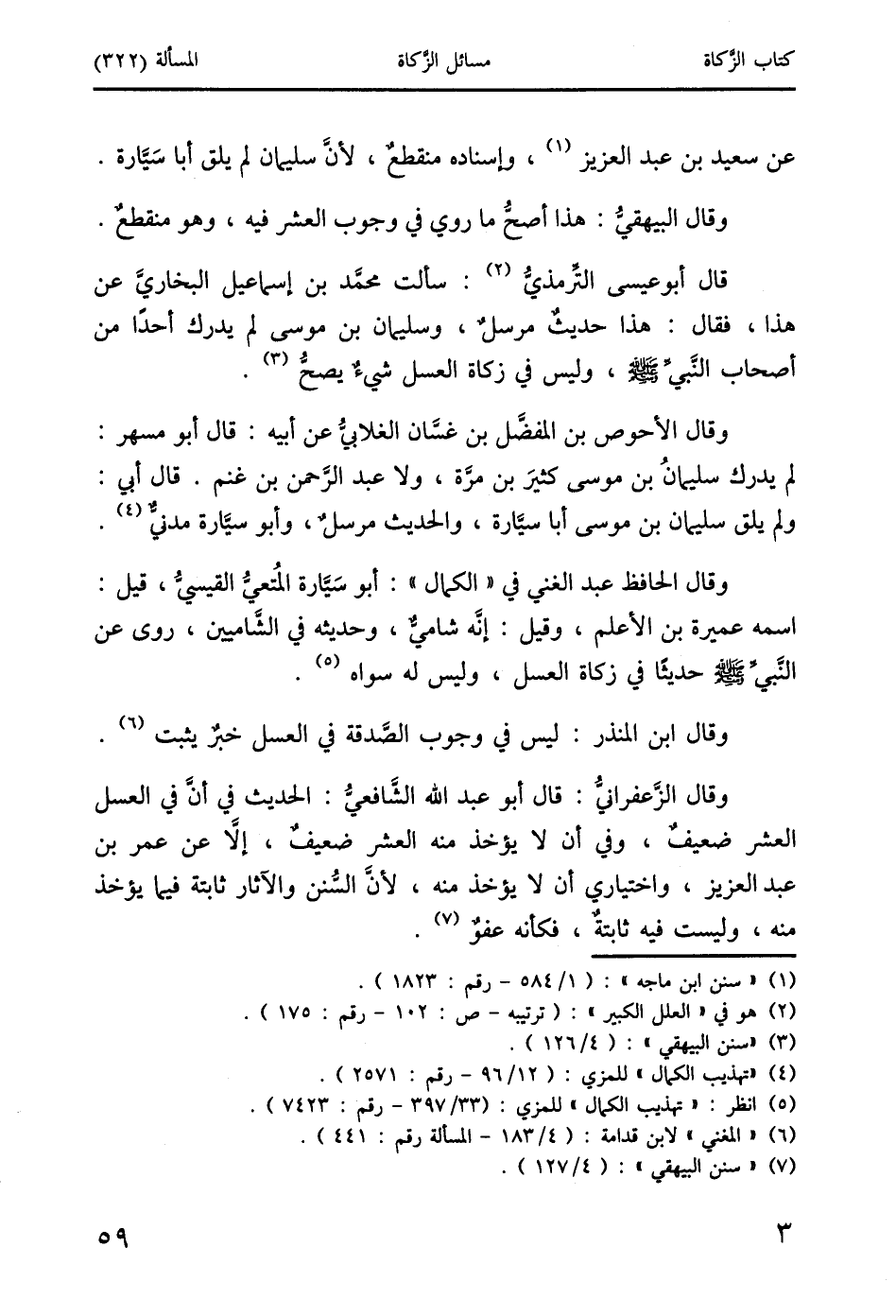 قال أبو عيسى التِّرمذيُّ (2): سألت محمَّد بن إسماعيل البخاريَّ عن هذا، فقال: هذا حديثٌ مرسلٌ، وسليمان بن موسى لم يدرك أحدًا من أصحاب النَّبيِّ صَلَّى اللَّهُ عَلَيْهِ وَسَلَّمَ، وليس في زكاة العسل شيءٌ يصحُّ (3).