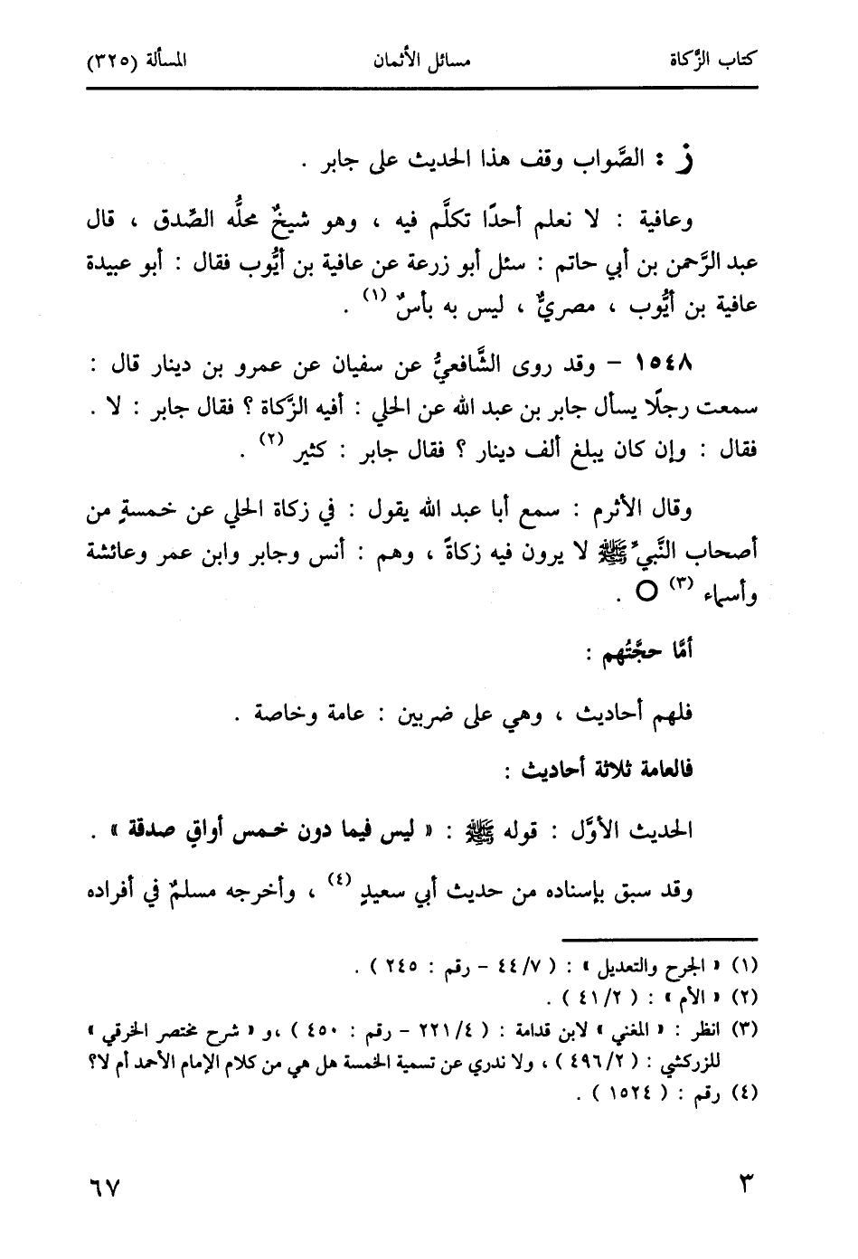 (3) انظر: "المغني" لابن قدامة: (4/ 221 - رقم: 450)، و" شرح مختصر الخرقي " للزركشي: (2/ 496)، ولا ندري عن تسمية الخمسة هل هي من كلام الإمام الأحمد أم لا؟