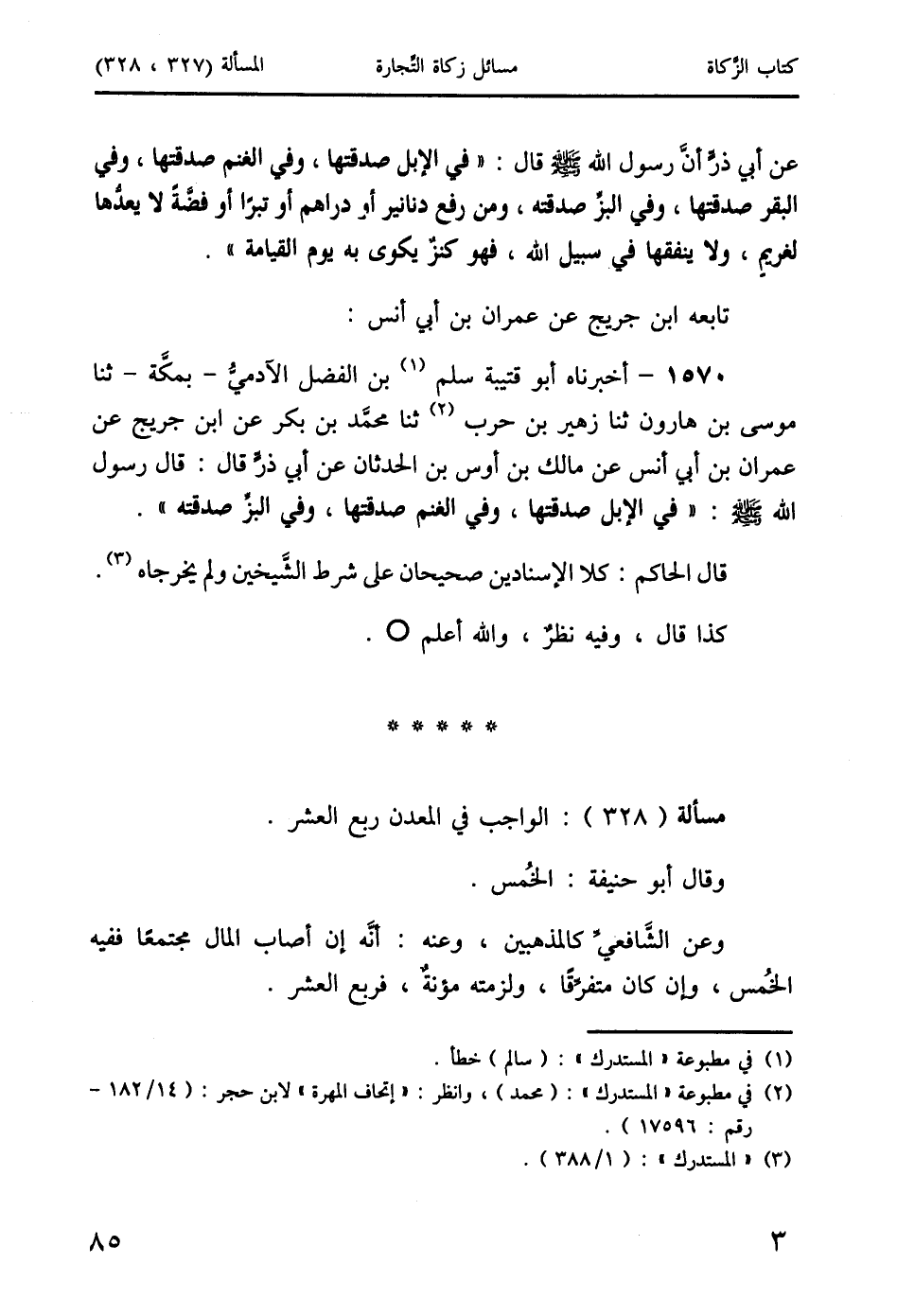 1570 - أخبرناه أبو قتيبة سلم (1) بن الفضل الآدميُّ- بمكَّة- ثنا موسى بن هارون ثنا زهير بن حرب (2) ثنا محمَّد بن بكر عن ابن جريح عن عمران بن أبي أنس عن مالك بن أوس بن الحدثان عن أبي ذرٍّ قال: قال رسول اللهءصَلَّى اللَّهُ عَلَيْهِ وَسَلَّمَ: " في الإبل صدقتها، وفي الغنم صدقتها، وفي البزِّ صدقته ".