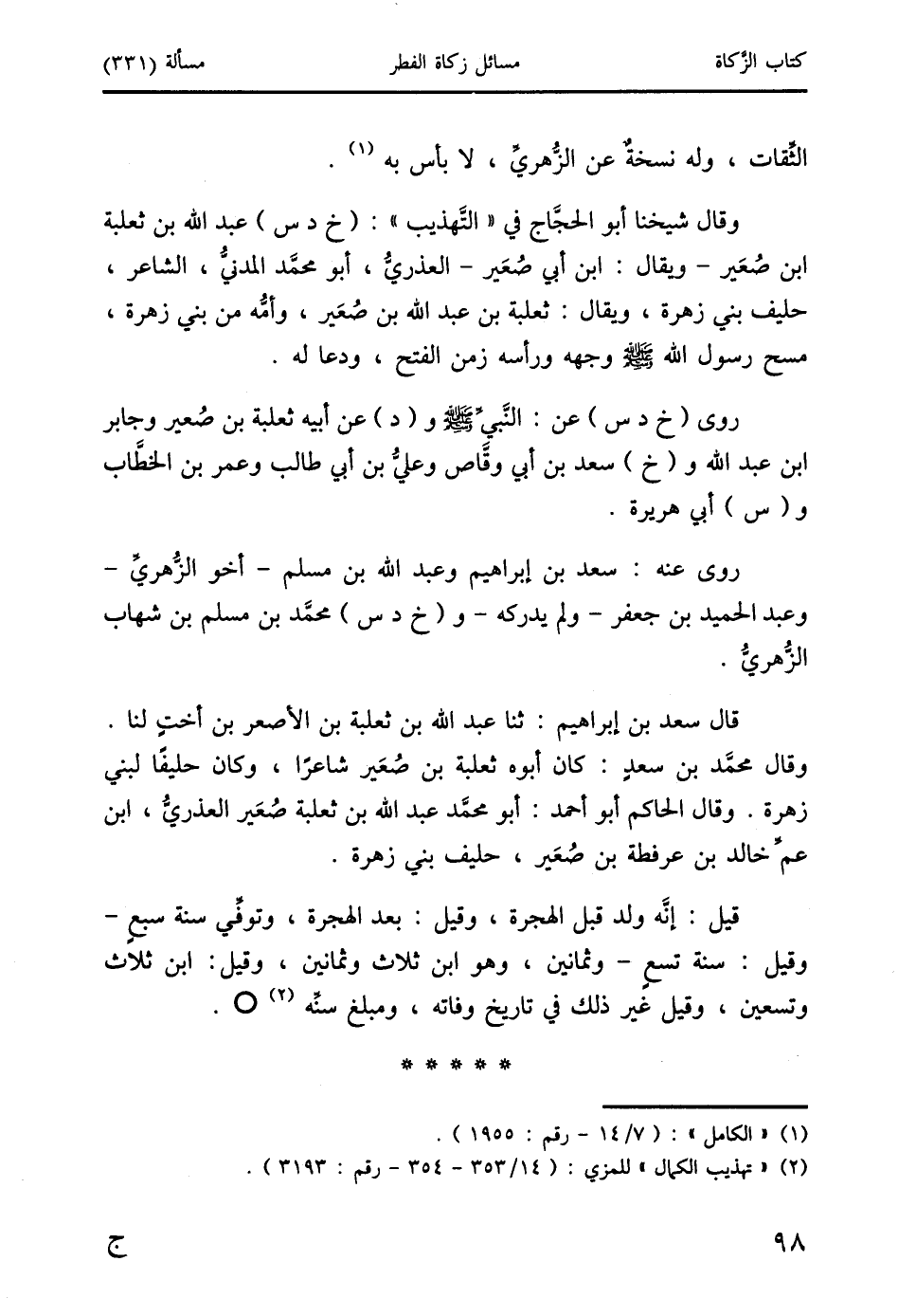 (2) "تهذيب الكمال" للمزي: (14/ 353 - 354 - رقم: 3193).