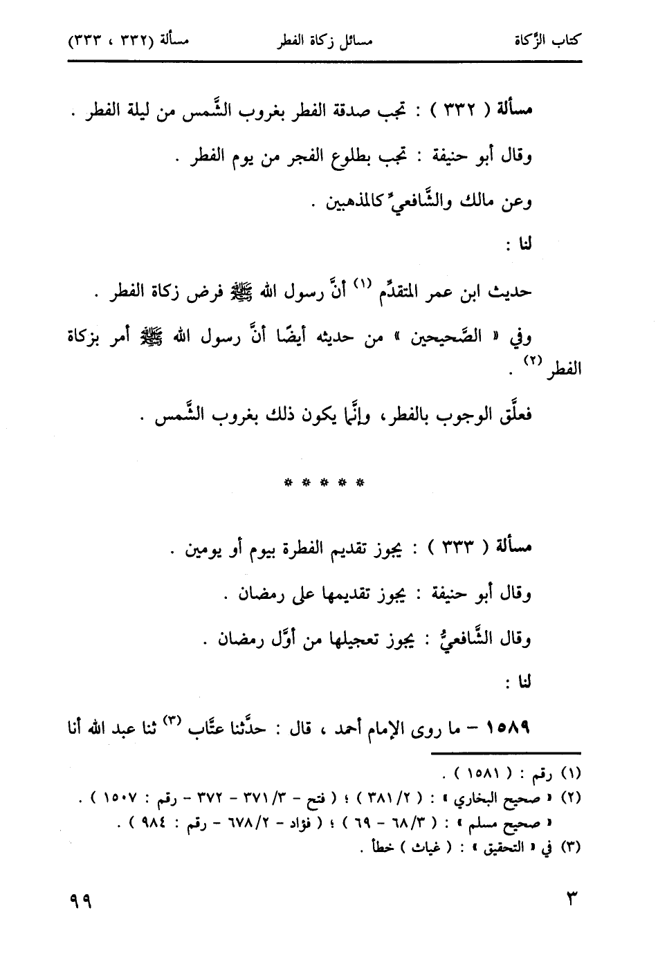 مسألة (332): تجب صدقة الفطر بغروب الشَّمس من ليلة الفطر.