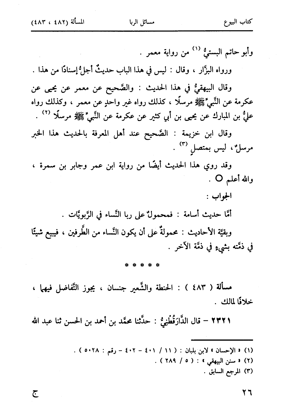 وقال البيهقيُّ في هذا الحديث: والصَّحيح عن معمر عن يحيى عن عكرمة عن النَّبيِّ صَلَّى اللَّهُ عَلَيْهِ وَسَلَّمَ مرسلاً، كذلك رواه غير واحدٍ عن معمر، وكذلك رواه عليُّ بن المبارك عن يحيى بن أبي كثير عن عكرمة عن النَّبيِّ صَلَّى اللَّهُ عَلَيْهِ وَسَلَّمَ مرسلاً (2).