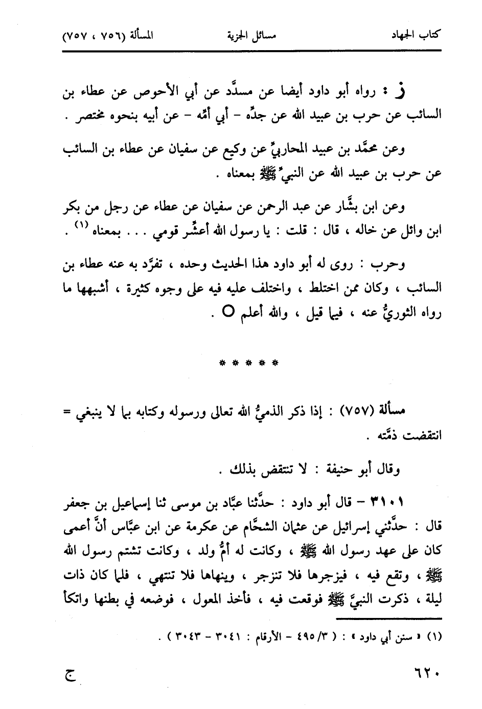 ز: رواه أبو داود أيضًا عن مسدَّد عن أبي الأحوص عن عطاء بن السائب عن حرب بن عبيد الله عن جدِّه- أبي أمِّه- عن أبيه بنحوه مختصر.