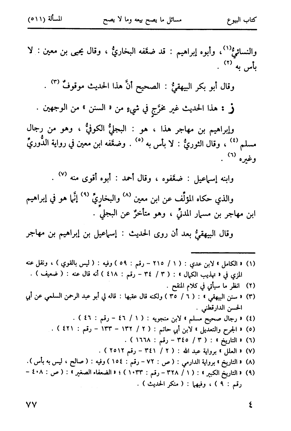 وإبراهيم بن مهاجر هذا، هو: البجليُّ الكوفيُّ، وهو من رجال مسلم (4)، وقال الثوريُّ: لا بأس به (5). وضعَّفه ابن معين في رواية الدُّوريِّ وغيره (6).