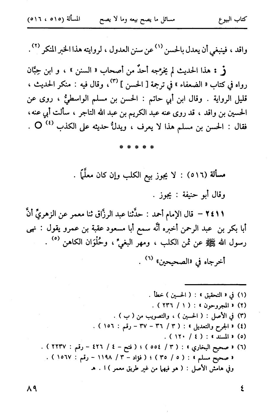 ز: هذا الحديث لم يخرِّجه أحدٌ من أصحاب "السنن"، وابن حِبَّان رواه في كتاب "الضعفاء" في ترجمة [الحسن] (3)، وقال فيه: منكر الحديث، قليل الرواية. وقال ابن أبي حاتم: الحسن بن مسلم الواسطيُّ، روى عن