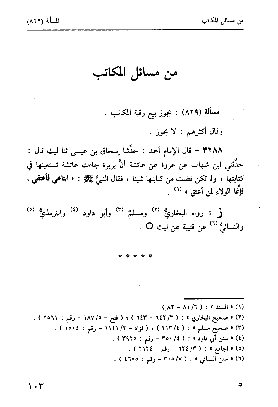 ز: رواه البخاري (2) ومسلم (3) وأبو داود (4) والترمذي (5) والنسائي (6) عن قتيبة عن ليث O.