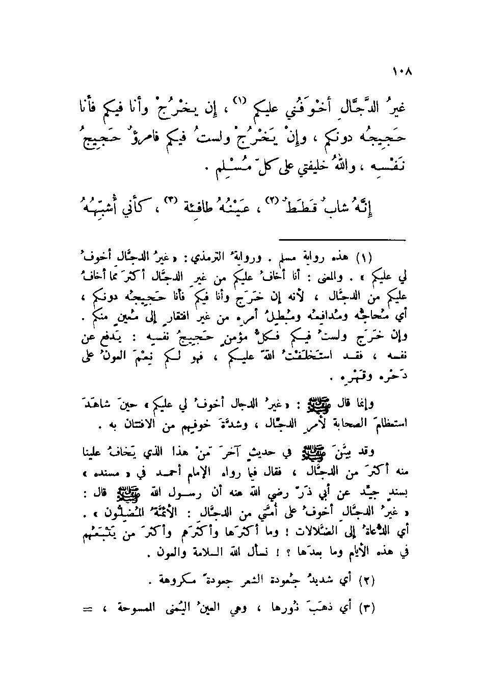 «غير الدجال أخوفني عليكم، إن يخرج وأنا فيكم فأنا حجيجه دونكم، وإن يخرج ولست فيكم فامرؤ حجيج نفسه، والله خليفتي على كل مسلم.
