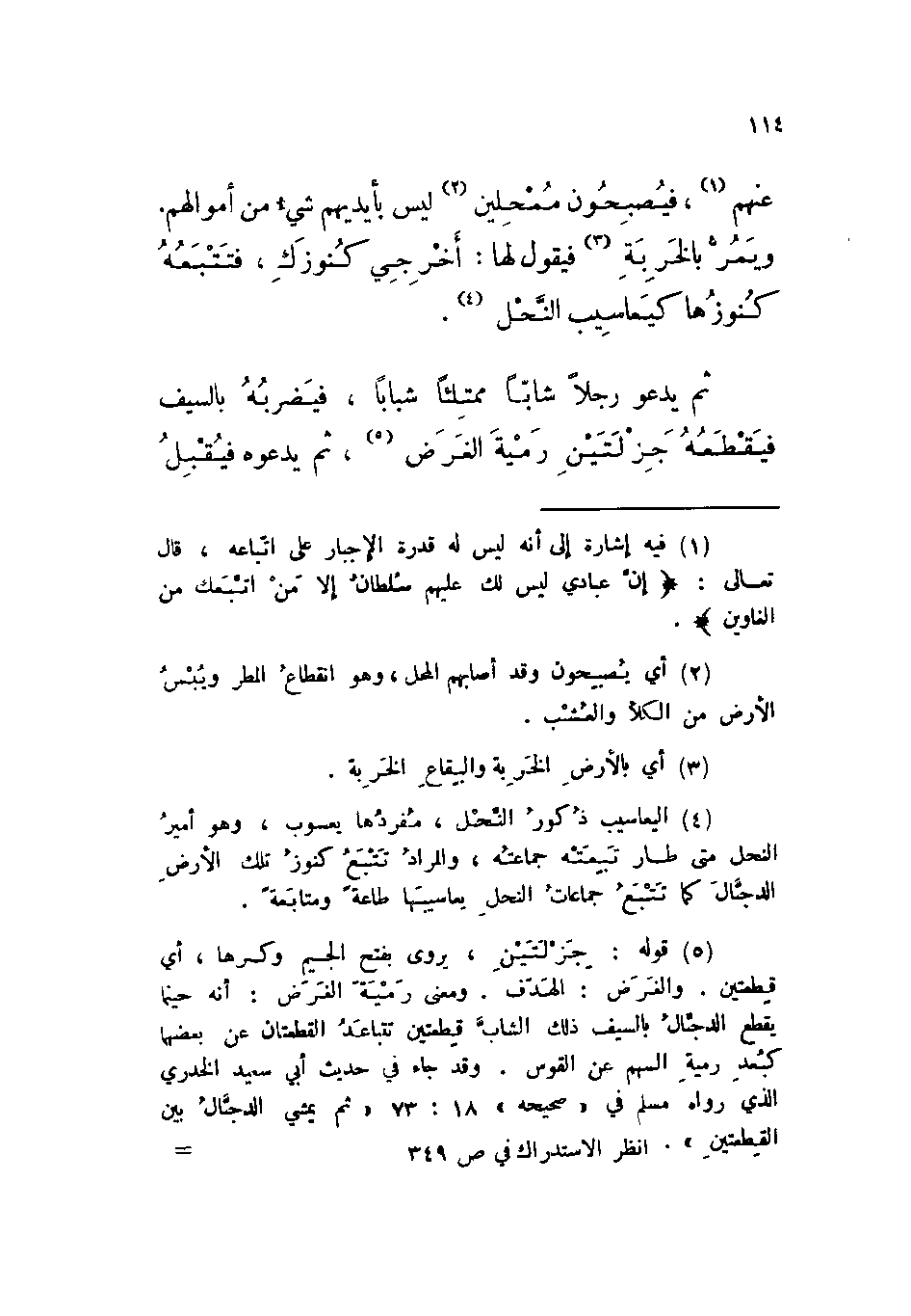 «عنهم، فيصبحون ممحلين ليس بأيديهم شيء من أموالهم. ويمر بالخربة فيقول لها: أخرجي كنوزك، فتتبعه كنوزها كيعاسيب النحل.
