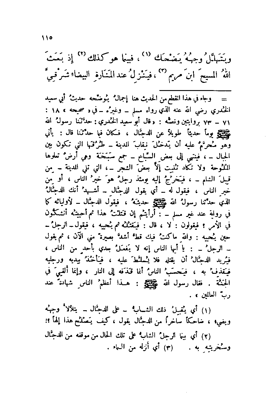 «ويتهلل وجهه يضحك، فبينما هو كذلك إذ بعث الله المسيح ابن مريم، فينزل عند المنارة البيضاء شرقي»