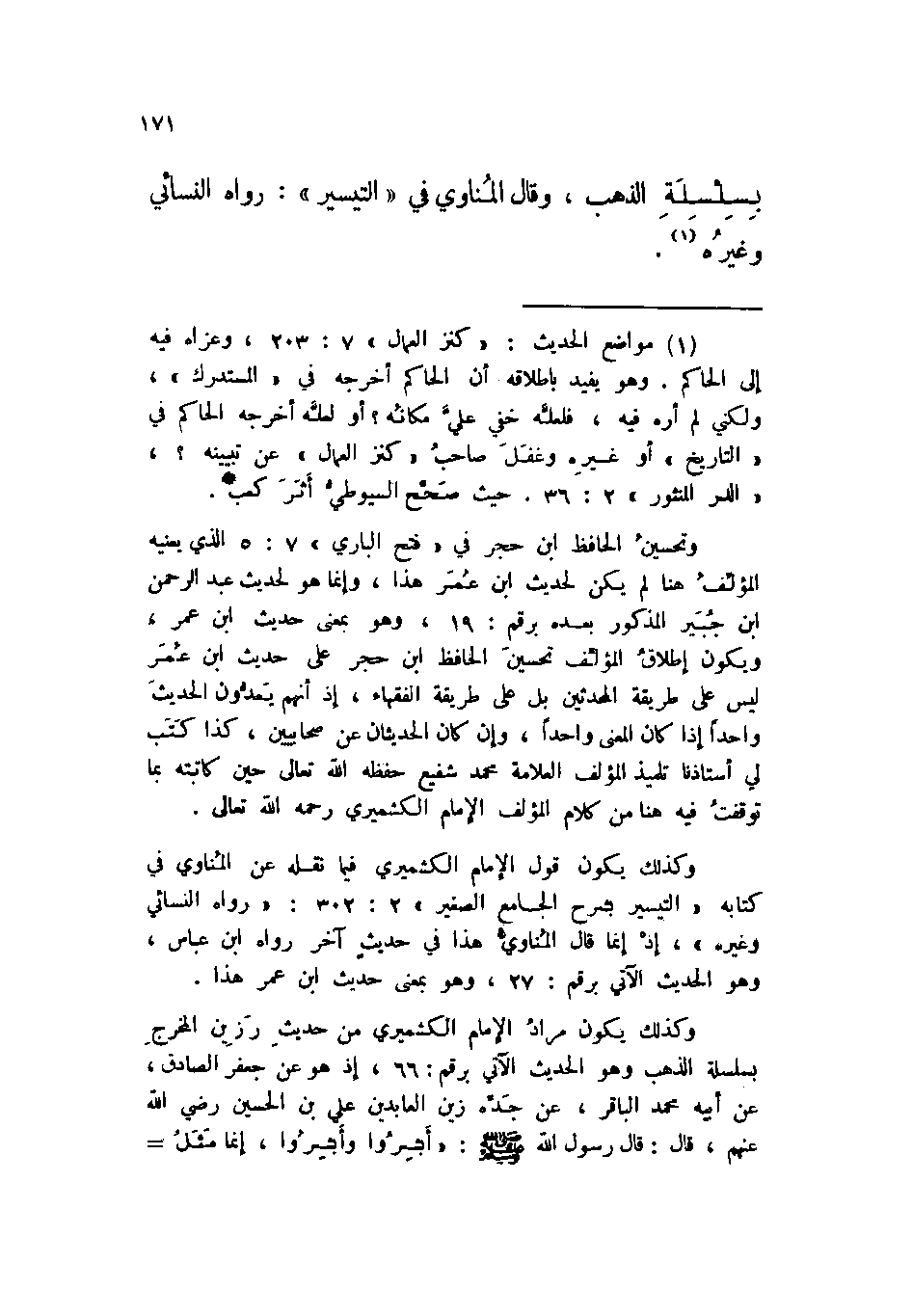 بسلسلة الذهب، وقال المناوي في ((التيسير)) : رواه النسائي وغيره.