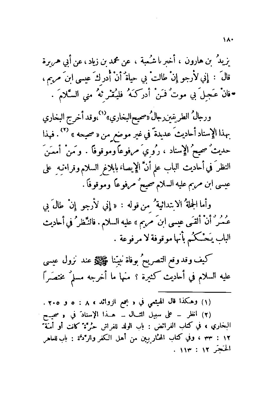 ورجال الطريقين رجال ((صحيح البخاري)) ، وقد أخرج البخاري بهذا الإسناد أحاديث عديدة في غير موضع من ((صحيحه)) . فهذا حديث صحيح الإسناد، روي مرفوعاً وموقوفاً. ومن أمعن النظر في أحاديث الباب علم أن الإيصاء بإبلاغ السلام وقراءته على عيسى ابن مريم عليه السلام، صحيح، مرفوعاً وموقوفاً.