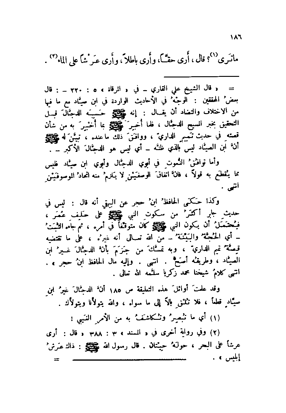 «ما ترى؟ قال، أرى حقاً، وأرى باطلاً، وأرى عرشاً على الماء.