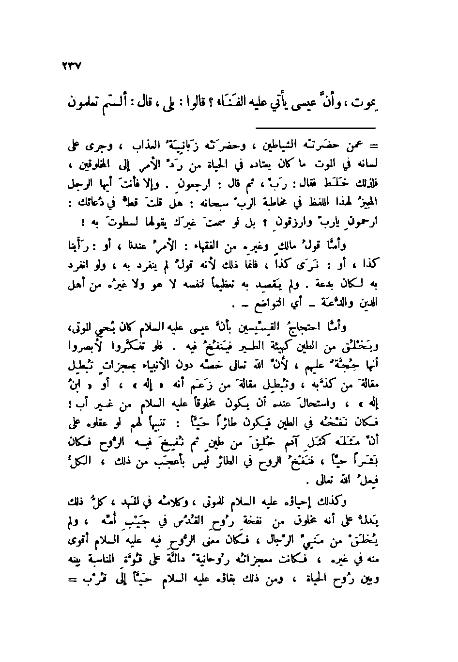 «يموت، وأن عيسى يأتي عليه الفناء؟ قالوا: بلى، قال: ألستم تعلمون»