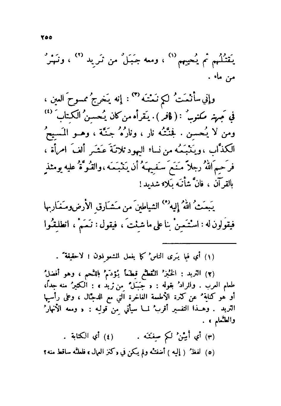 «يقتلهم ثم يحييهم، ومعه جبل من ثريد، ونهر من ماء.
